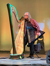 1969年ニューヨーク生まれ。ジュリアード音楽院で学び、ロンドンの王立音楽院とフランスのリヨン国立高等音楽院で教鞭をとり、演奏場所はホワイトハウスからヨルダン川、スイス鉱山まで。ハープひとつで国境もジャンルも飛び越えるパーク・スティックニーがソロ公演を開催した。キング・クリムゾンやフォリナーで活動したイアン・マクドナルドのアルバムにも参加している彼だが、この日はマイルス・デイヴィスの「オール・ブルース」など既成のジャズ・ナンバーも彼独自のアプロ―チ、ハープの独特のソノリティを十二分に加えて実に新鮮に演奏。加えて、オリジナル曲の数々のすこぶる面白かった。きけば、スティックニーは数学に造詣が深く、数列などからもインスピレーションを受けて曲作りをしているという。しかも彼はルービックキューブの達人である。観客のひとりにルービックキューブを渡し、それをぐちゃぐちゃな並びにしてもらった後、片手にルービックキューブを持ってハープの即興演奏を始め、10分ほどのプレイが終わった頃には6面揃っている、というパフォーマンスでは、客席のいろんなところから驚きの声があがった。(原田和典)