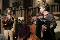 不勉強にして存じ上げていなかったものを目の当たりにして、それがゴキゲンに楽しかった時の、“喜びが増えた感”は確実に人生に潤いを与える。そういう意味で私はSöndörgö(ションドルグ)のライヴ中、ひたすら高揚した。彼らはハンガリーの少数民族、南スラヴ人の伝統音楽をベースに演奏するバンド。30年前に首都ブダペストの北にある都市、センテンドゥレで結成されたという。アーロン・エレディチ、ベンヤミ・エレディチ、ダ―ヴィド・エレディチ、ショロモン・エレディチは血がつながっていて、そこに親友のアーベル・デーネシュがウッド・ベースで加わる。この生音のウッド・ベースが、まずすごかった。音色の太さ、音程の良さ、スタミナ、フレーズの面白さ。彼のベースが敷く音のカーペットの上を舞うように、エレディチ姓の者たちがさまざまな楽器を持ち替えて、歌い、観客から手拍子や笑顔を引き出していく。第1部はダンサブルな曲、第2部は即興を交えた曲を中心に構成されており、「僕らの即興はジャズとはちょっと違うんだよ」といいながらの長尺インプロヴィゼーションも、また痛快だった。(原田和典)