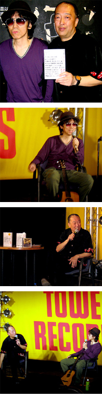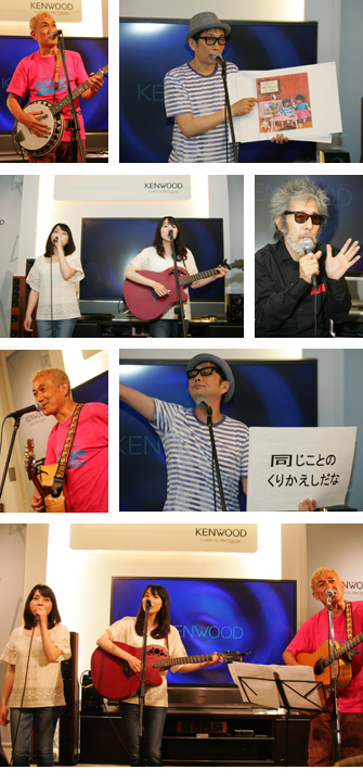 THE DUETのアコースティック・ライヴに始まり、菅野ヘッケル・中川五郎・サエキけんぞう・マイク越谷による中身の濃いボブ・ディラン裏話、サエキけんぞうによる危ない歌詞説明付ライヴ・パフォーマンス、そして中川五郎によるプロテスト・ソング・ライヴとケンウッド・イベント始まって以来のバラエティに富んだ内容は、出演者全員の個性がカラフルなトーンとなって表現され、この日集まった観客を120%満足させる内容となった。(上田 和秀)