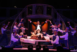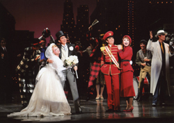 続いての舞台では、スカイとサラ、ネイサンとアデレイドの結婚式がにぎにぎしく行われ、フィナーレでは、北翔海莉が「運命よ、今夜は女神らしく LUCK BE A LADY 」を英語で歌い、ニュ―ヨークらしさを出して、観客を魅了した。